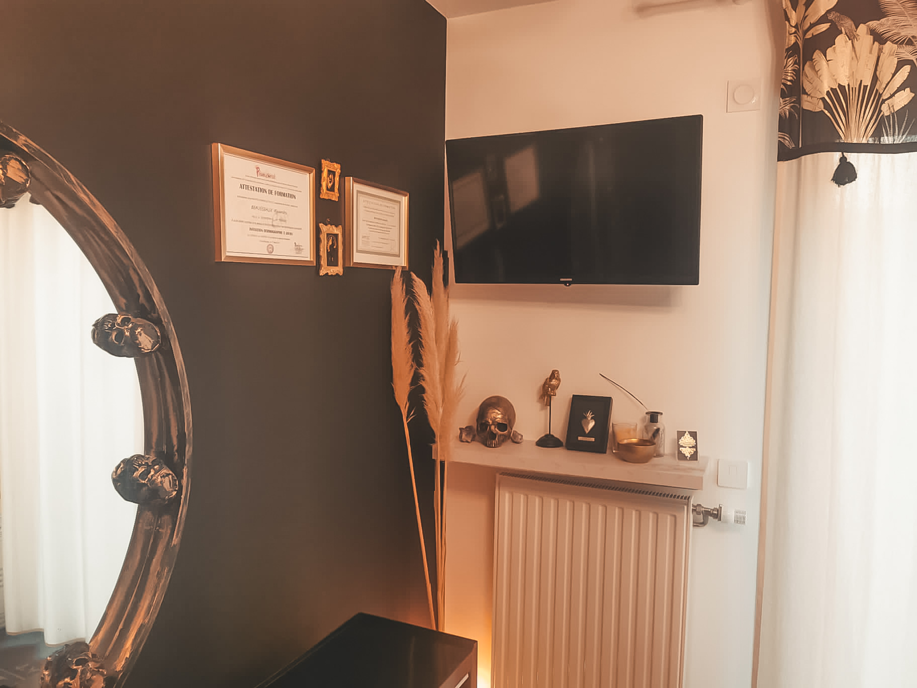 Votre studio de tatouage à Lyon (métropole) est conçu pour vous recevoir dans les meilleures conditions. Un lieu agréable et chaleureux uniquement dédié au tatouage et aux prestations esthétiques compatibles. Son agencement sobre et sans superflu permet de faciliter le nettoyage et l'asepsie pour vous garantir ainsi les meilleurs standards en matière d'hygiène et de sécurité.